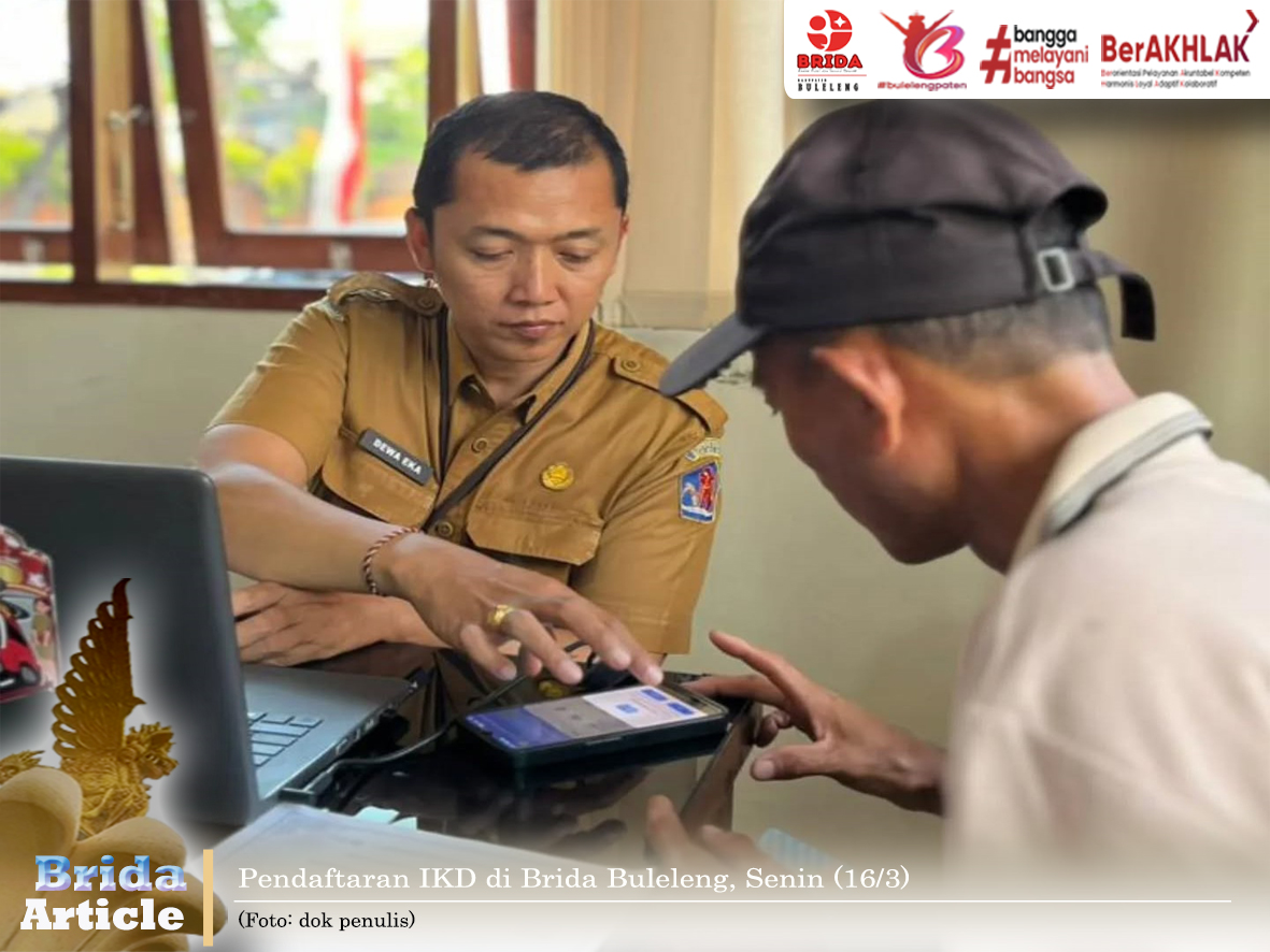 Transformasi layanan administrasi kependudukan menuju sistem digital terus didorong. Namun, pemanfaatan Identitas Kependudukan Digital (IKD) masih perlu ditingkatkan agar layanan menjadi lebih praktis, cepat, dan mudah diakses. Badan Riset dan Inovasi Daerah (Brida) Kabupaten Buleleng bekerja sama dengan Tim Dinas Kependudukan dan Pencatatan Sipil Kabupaten Buleleng melaksanakan kegiatan Pendaftaran dan Aktivasi IKD di Kantor BRIDA pada Senin, 16 Maret 2026.