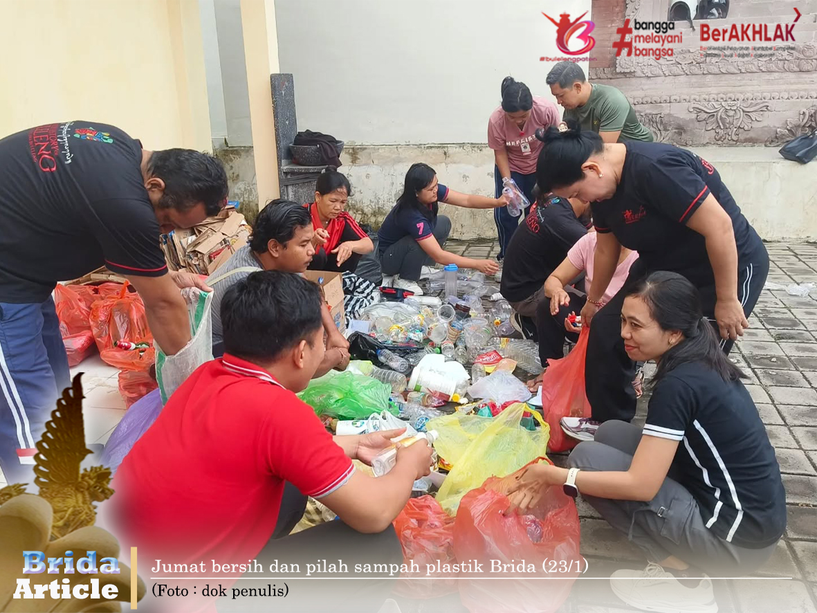 Jumat (23/1) pagi di Kantor Brida Buleleng terasa lebih seru dan penuh semangat. Seluruh pegawai bersama-sama melaksanakan gotong royong membersihkan lingkungan kantor, sekaligus mengumpulkan sampah plastik untuk disetorkan ke Bank Sampah Brida.