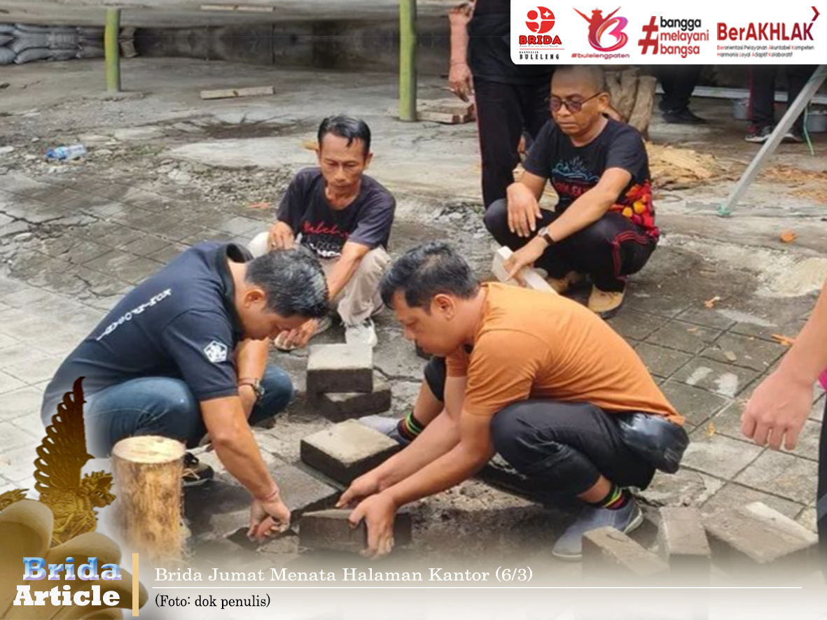Suasana Jumat (6/3) di Kantor BRIDA Kabupaten Buleleng hari ini terasa berbeda. Seluruh pegawai turun langsung mengikuti kegiatan gotong royong untuk menjaga lingkungan kantor tetap bersih, rapi, dan nyaman.