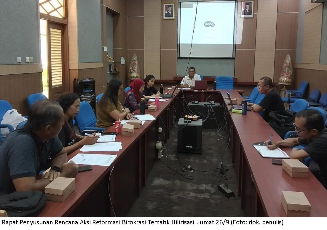 Badan Perencanaan dan Pembangunan Daerah Kabupaten Buleleng menyelenggarakan rapat Penyusunan Rencana Aksi Reformasi Birokrasi (RB) Tema Hilirisasi pada hari Jumat, 26 September 2025 di ruang rapat setempat. Rapat dibuka dan dipimpin oleh JF Perencana, Made Sudiarta yang dihadiri perwakilan dari Dinas Perijinan, Brida, Dinas Pertanian, Perindagkop, Dinas Ketahanan Pangan serta Dinas PUTR.