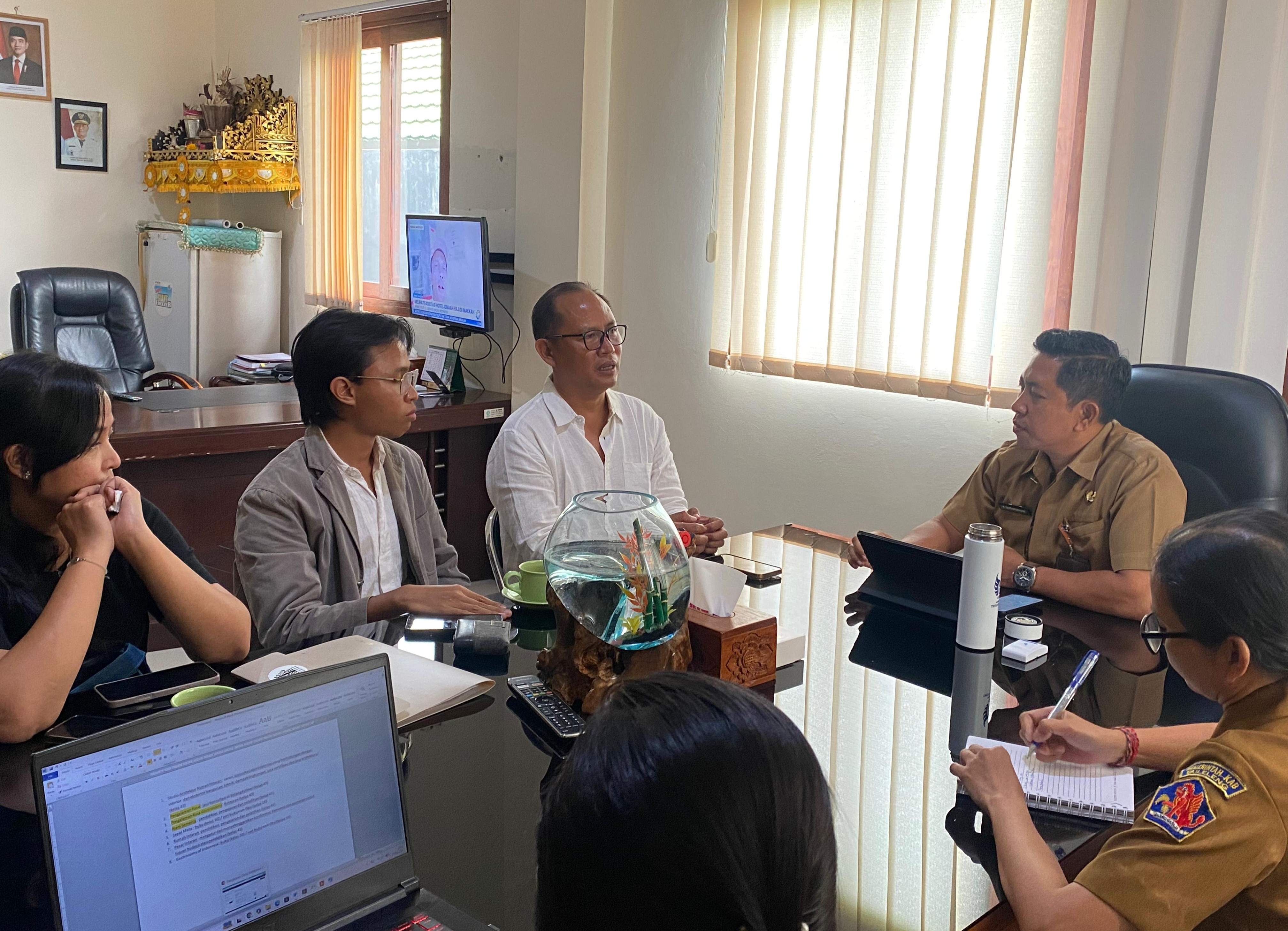 Kehadiran tim Rumah Intaran disambut langsung oleh Kepala Brida, Ketut Suwarmawan, S.S.T.P., M.M., di ruang rapat pimpinan, Senin (27/4) dengan didampingi oleh Analis Kebijakan Ahli Muda, Luh Sri Eka Sari, S.E.