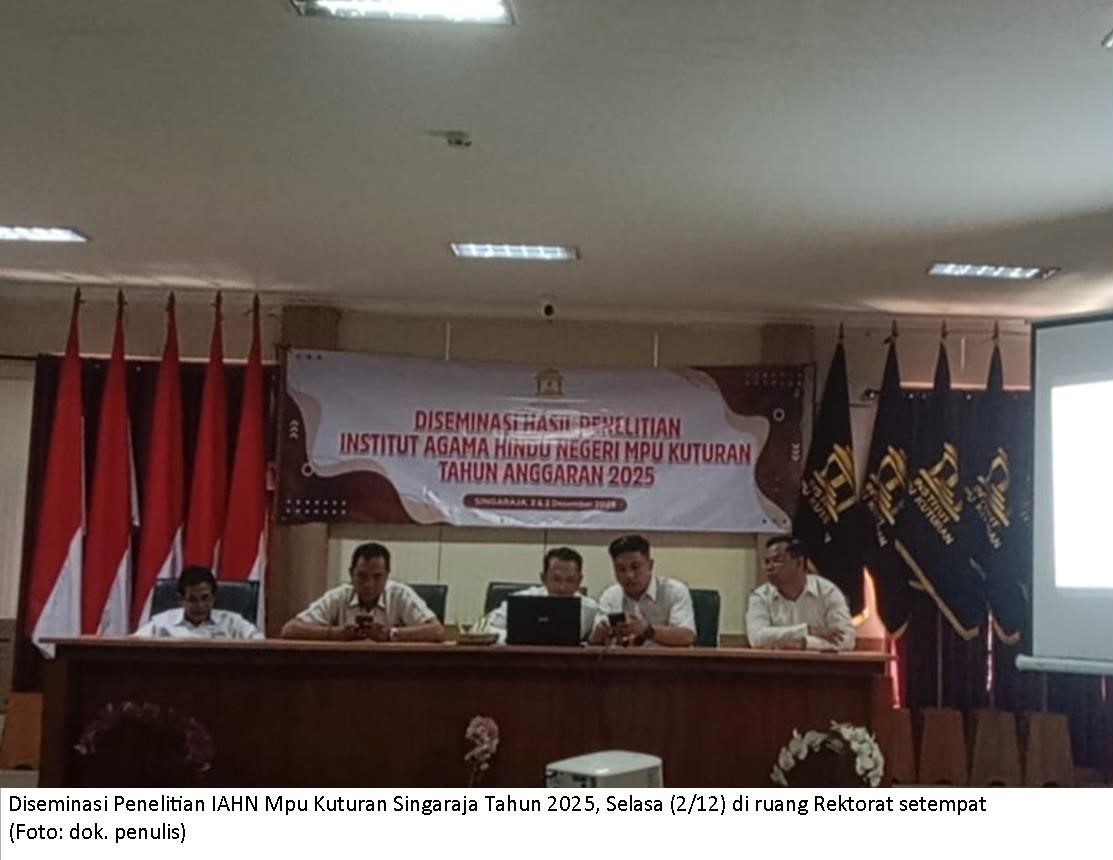 Brida News - Analis Kebijakan Ahli Muda Badan Riset dan Inovasi Daerah (Brida) Buleleng, I Nyoman Pande Sumertha, S.E., I Gede Suardika, S.E., M.Pd., Made Sumbertiasih, S.E., M.M., Made Anik Widyastuti, S.T., M.M., mengikuti undangan Diseminasi Penelitian Institut Agama Hindu Negeri (IAHN) Mpu Kuturan Singaraja Tahun Anggaran 2025, Selasa (2/12) di ruang Rektorat setempat.