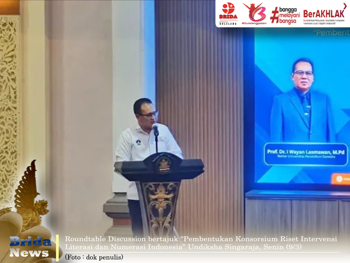Buleleng - Badan Riset dan Inovasi Daerah (BRIDA) Kabupaten Buleleng menghadiri kegiatan Roundtable Discussion bertajuk “Pembentukan Konsorsium Riset Intervensi Literasi dan Numerasi Indonesia” yang diselenggarakan di Gedung Balingkang, Universitas Pendidikan Ganesha (Undiksha) Singaraja, Senin (9/3).