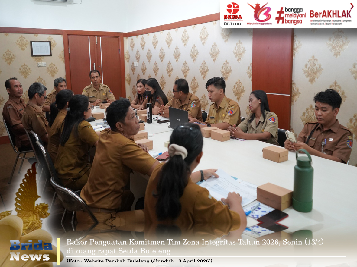 Buleleng - Terdapat tiga satuan kerja unggulan Zona Integritas (ZI) dengan predikat Wilayah Bebas Korupsi (WBK) di Kabupaten Buleleng, diantaranya BKPSDM, SMP Negeri 4 Singaraja, dan Puskesmas Buleleng 3. Hal itu disampaikan Kepala Bagian Organisasi Setda Kabupaten Buleleng, I Gusti Putu Ngurah Mastika saat memimpin Rapat Koordinasi (Rakor) Penguatan Komitmen Tim Zona Integritas Tahun 2026 di ruang rapat setempat, Senin (13/4).