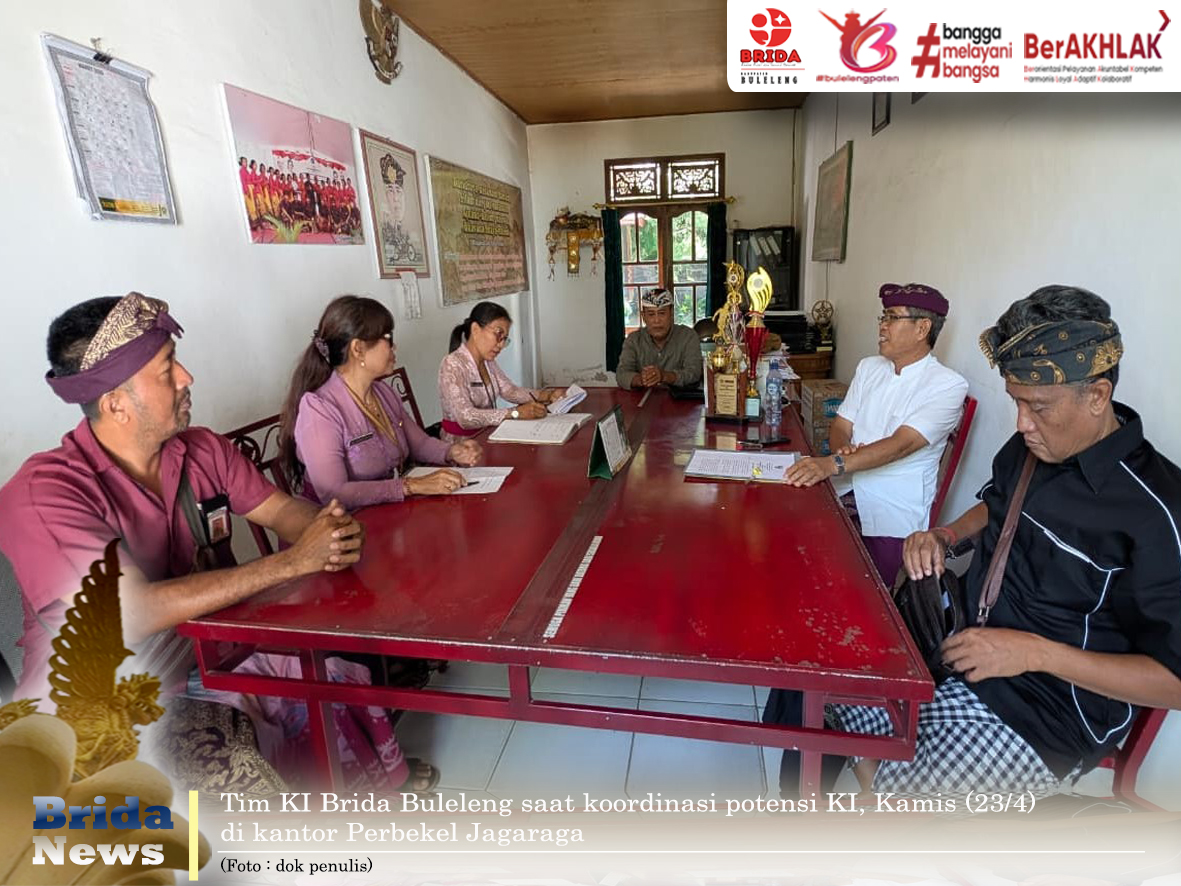 Buleleng - Tim Kekayaan Intelektual (KI) Badan Riset dan Inovasi Daerah (Brida) Kabupaten Buleleng kembali melaksanakan koordinasi dan survei di wilayah Kecamatan Sawan, Kamis (23/4) dengan tujuan penelusuran serta pendataan potensi KI berbasis budaya dan kearifan lokal masyarakat.
