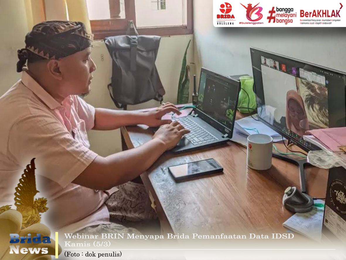 Buleleng - Badan Riset dan Inovasi Daerah (Brida) Kabupaten Buleleng mengikuti Webinar BRIN Menyapa Brida, yang tentunya diselenggarakan oleh Badan Riset dan Inovasi Nasional (BRIN), Kamis (5/3), dengan mengangkat tema Pemanfaatan Data Indeks Daya Saing Daerah (IDSD) untuk Perumusan Solusi Pembangunan Daerah.