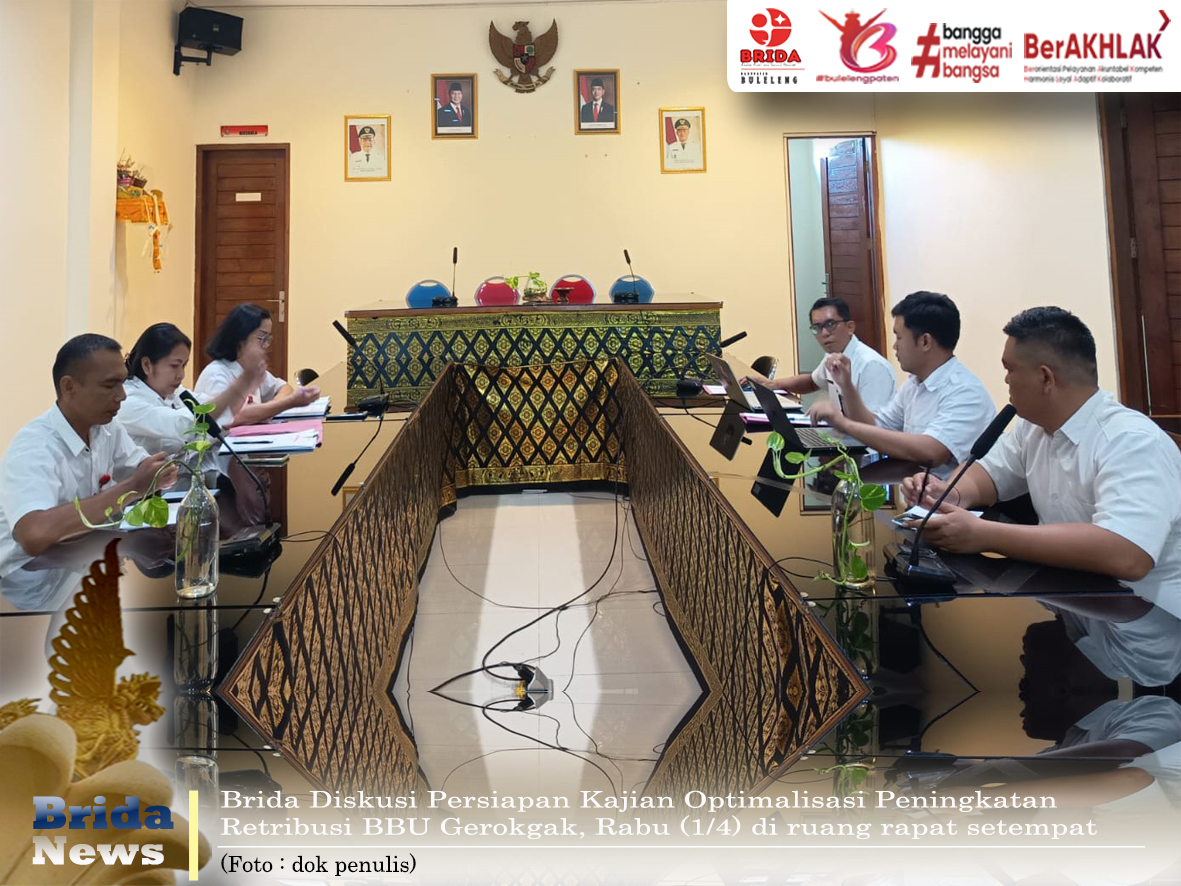Buleleng - Badan Riset dan Inovasi Daerah (Brida) Kabupaten Buleleng periksa data personel, portofolio dan peralatan terhadap calon pelaksana penyusunan Kajian Optimalisasi Peningkatan Retribusi Balai Benih Unggul (BBU) Gerokgak di Kabupaten Buleleng, Rabu (1/4) di ruang rapat setempat. Pemeriksaan dipimpin oleh Sekretaris Tim Persiapan Kajian, I Nyoman Pande Sumertha, S.E., dan dihadiri oleh anggota tim persiapan lainnya.