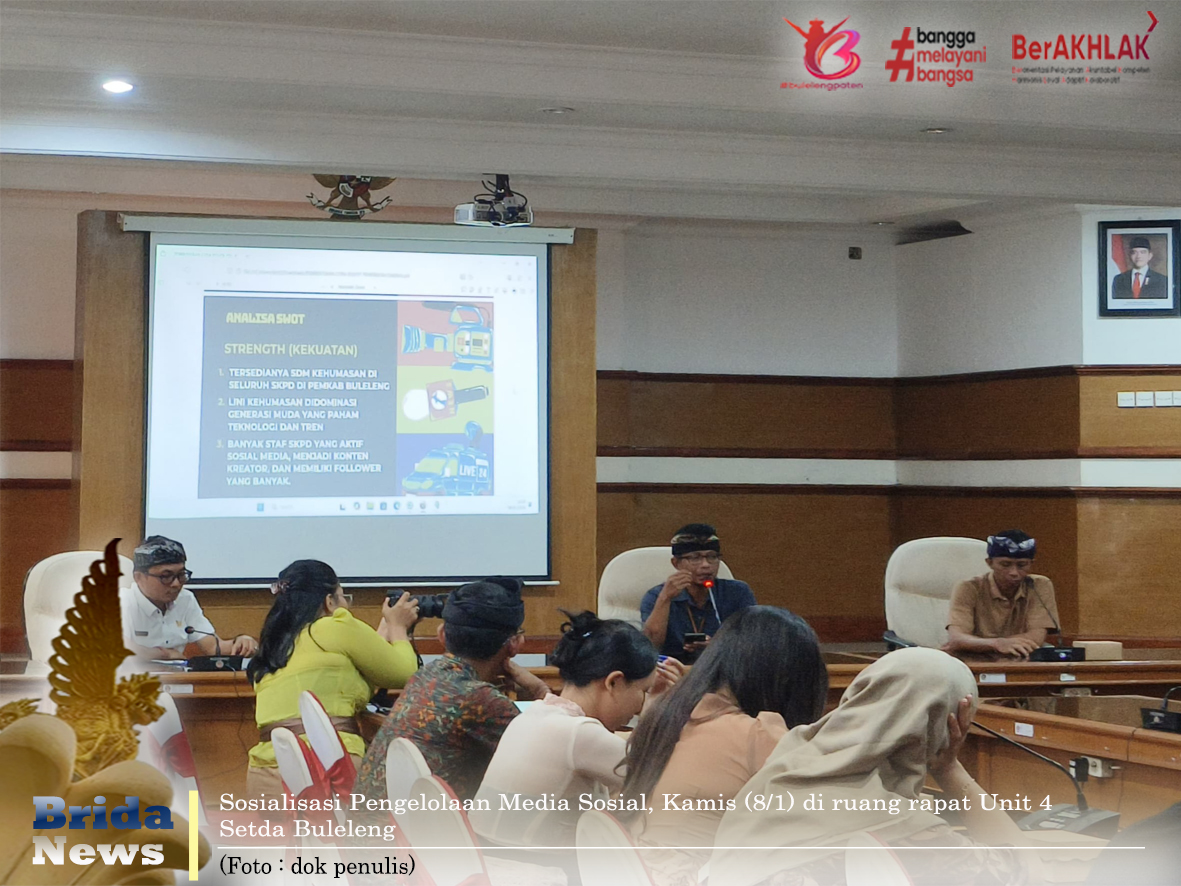 Kepala Bagian Protokol dan Komunikasi Pimpinan Setda Kabupaten Buleleng, Gede Jumat Adi Jaya, menyampaikan arahan pimpinan agar jajaran kehumasan dan admin media sosial SKPD tidak bersikap pasif terhadap isu yang beredar. Setiap informasi viral diharapkan dapat ditanggapi secara cepat, tepat, dan bertanggung jawab, khususnya oleh SKPD teknis yang memahami substansi persoalan.