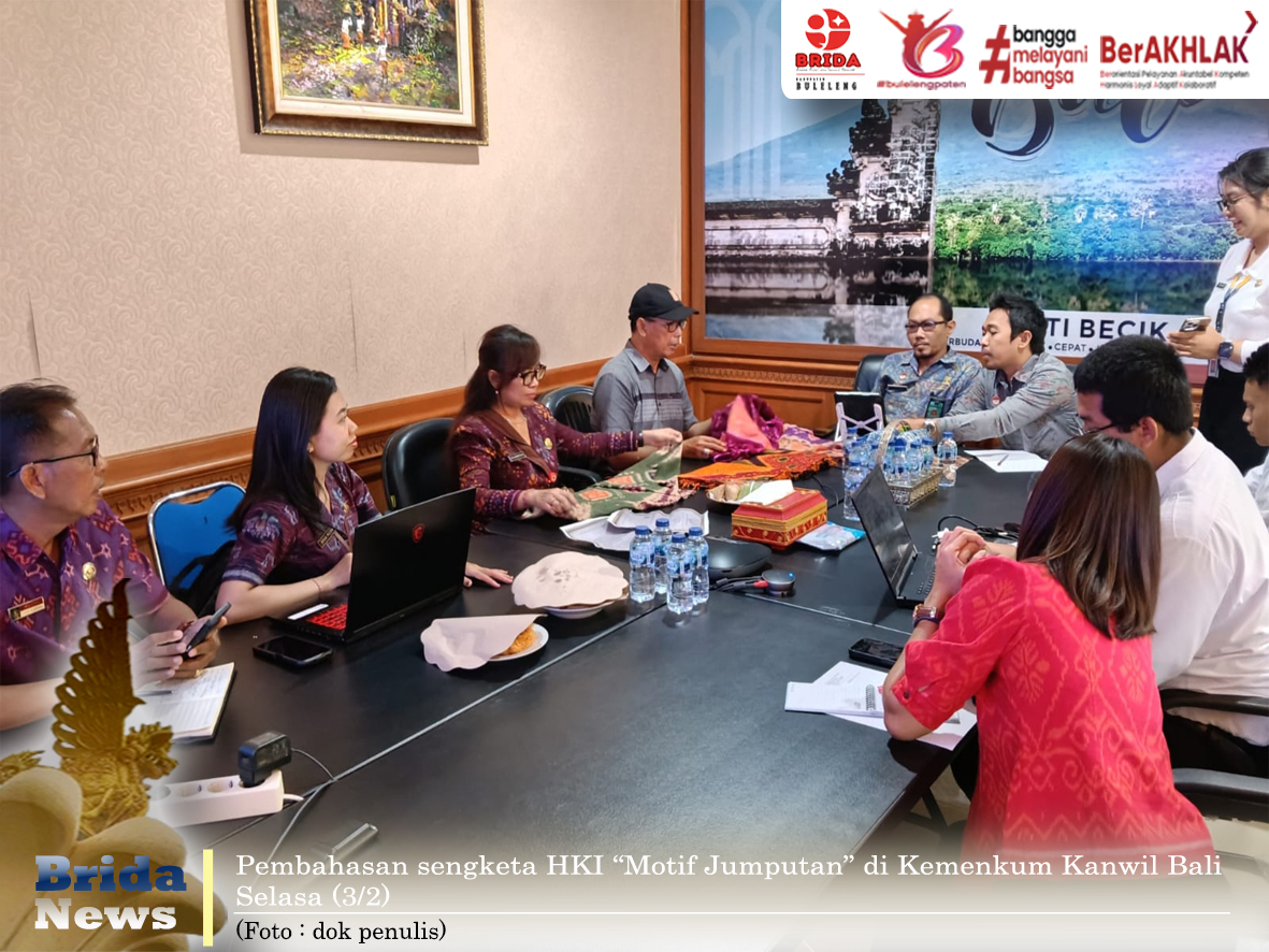 Buleleng - Badan Riset dan Inovasi Daerah (Brida) Kabupaten Buleleng fasilitasi pengaduan dugaan pelanggaran hak cipta Motif Jumputan Bianglala dan Jumputan Pelangi ke Kantor Wilayah Kementerian Hukum Provinsi Bali, Selasa (3/2). Kegiatan ini dilaksanakan menindaklanjuti surat undangan klarifikasi tertanggal 27 Januari 2026.