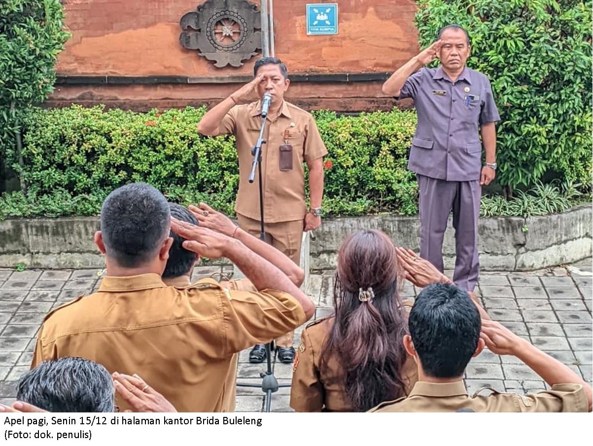 Brida News - Apel pagi Badan Riset dan Inovasi Daerah (Brida) Kabupaten Buleleng, Senin (15/12) diawali dengan penghormatan kepada Bendera Merah Putih sebagai wujud cinta dan tanggung jawab kepada bangsa.