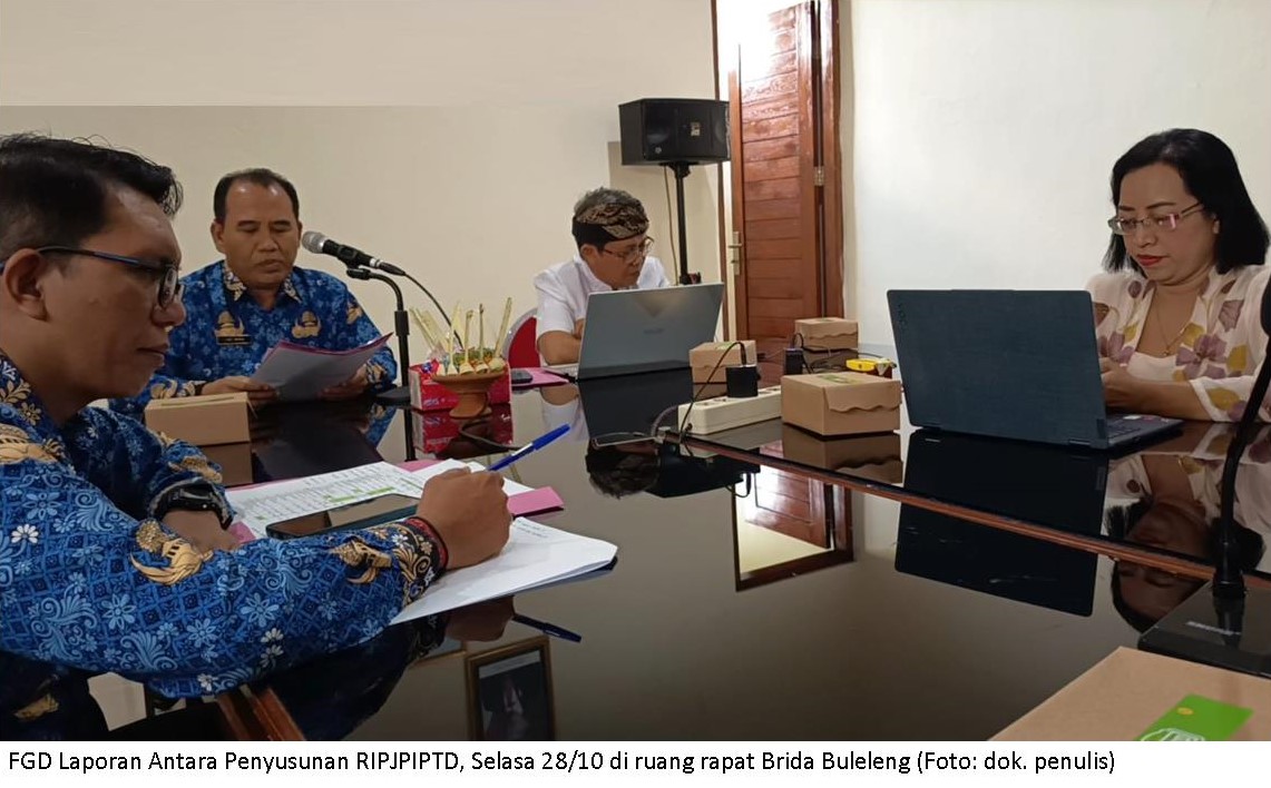 BRIDA, Badan Riset dan Inovasi Daerah (Brida) Kabupaten Buleleng melaksanakan Focus Group Discussion (FGD) Laporan Antara Penyusunan Rencana Induk dan Peta Jalan Pemajuan Ilmu Pengetahuan dan Teknologi Daerah (RIPJPIPTD) sebagai turunan dari Rencana Pembangunan Jangka Menengah Daerah (RPJMD), Selasa (28/10) di ruang rapat setempat. Acara dipimpin oleh Sekretaris Brida, drg. I Ketut Wika, dengan dihadiri oleh Tim Pelaksana, Tim Teknis, Tim Pengawas, Tim Pengendali Mutu, dan perwakilan perangkat daerah terkait lainnya.