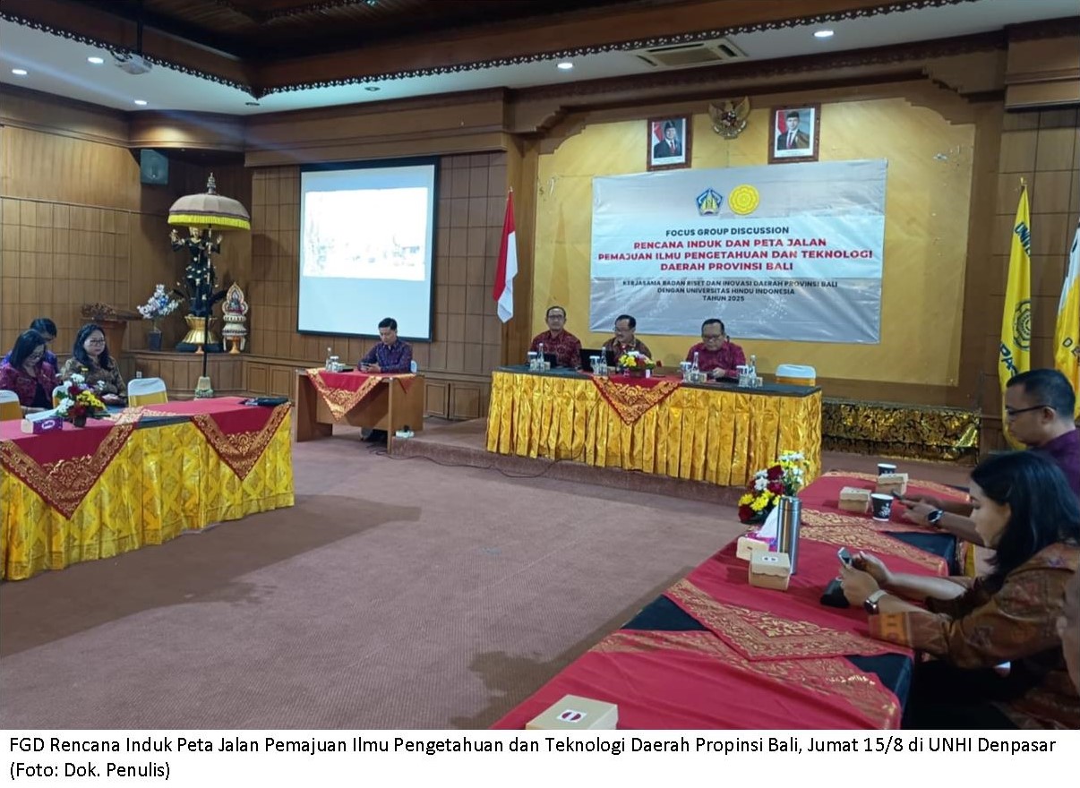 BRIDA, Perwakilan Badan Riset dan Inovasi Daerah (Brida) Kabupaten Buleleng, Analis Kebijakan Ahli Muda, I Nyoman Pande Sumertha, S.E., dan Analis Lingkungan Hidup, I Putu Angga Kristyawan, S.T., M.Eng., menghadiri Focus Group Discussion (FGD) Rencana Induk dan Peta Jalan Pemajuan Ilmu Pengetahuan dan Teknologi Daerah (RIPJPID) Provinsi Bali yang dilaksanakan di Gedung Rektorat Universitas Hindu Indonesia, Denpasar, Jumat (15/8).