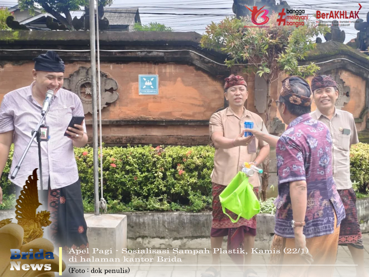Buleleng - Badan Riset dan Inovasi Daerah (Brida) Kabupaten Buleleng sosialisasikan cara pemilahan sampah pada apel pagi, Kamis (22/1) di halaman kantor setempat. Pemilahan sampah disosialisasikan langsung oleh Pengurus Bank Sampah Brida.