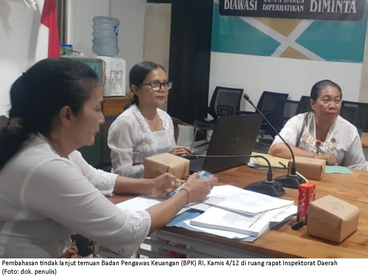 Brida News - Inspektorat Daerah Kabupaten Buleleng melaksanakan pertemuan dalam rangka pemantauan tindak lanjut temuan Badan Pemeriksa Keuangan (BPK) RI, Kamis (4/12) di ruang rapat setempat.