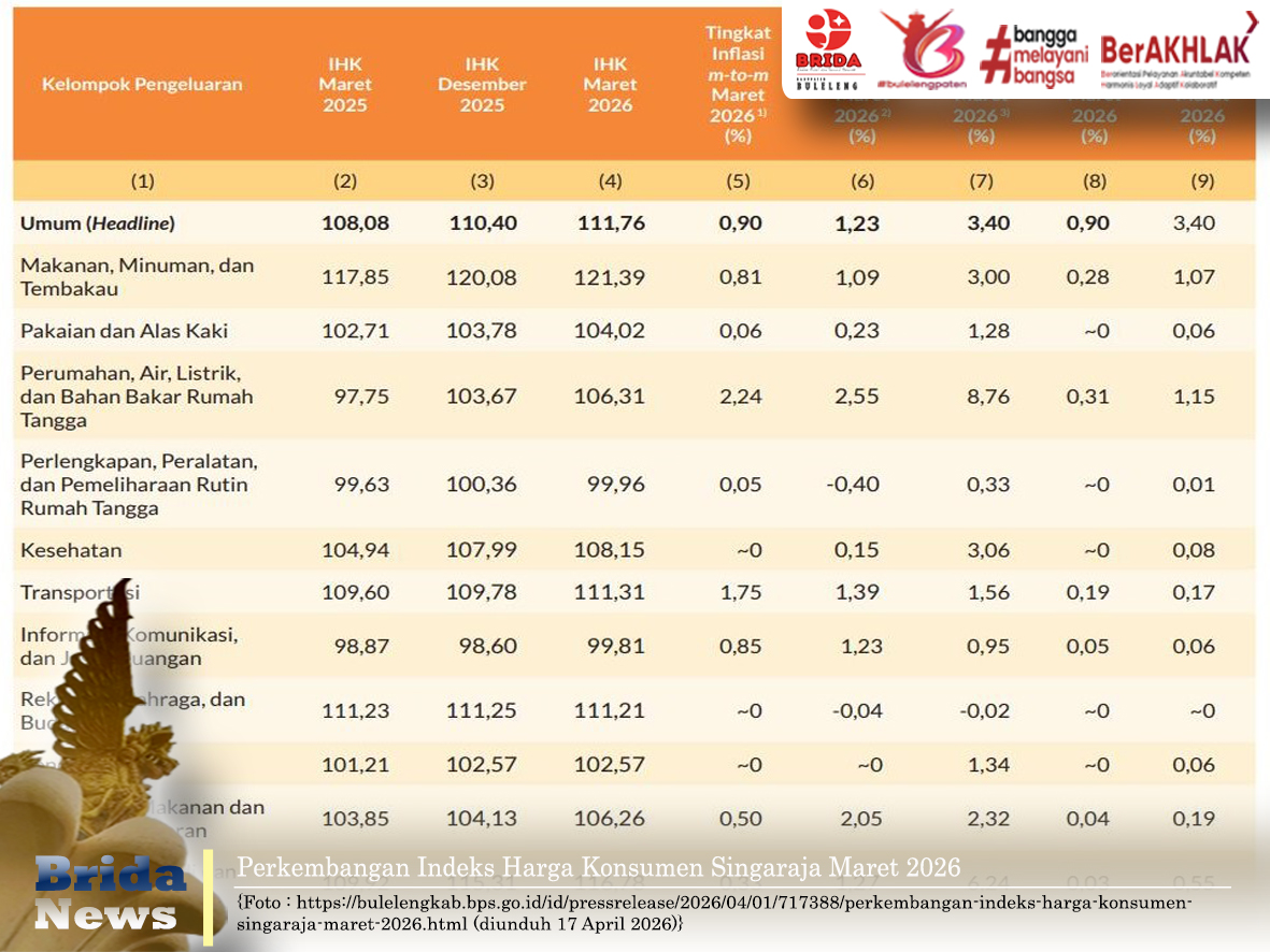 Buleleng - Perencana Ahli Muda dan Operator E Walidata Brida Buleleng mengikuti Sosialisasi Pembinaan Marathon Masyarakat Statistik (Bima Sakti) Volume 1 Tahun 2026, yang diselenggarakan oleh Badan Pusat Statistik (BPS) Kabupaten Buleleng. Sosialisasi tersebut dalam rangka peningkatan kualitas perstatistikan di lingkungan Pemerintah Kabupaten Buleleng dengan tema “Peningkatan Kualitas Data untuk Perstatistikan yang lebih baik”, secara daring dan luring, kamis (16/4).