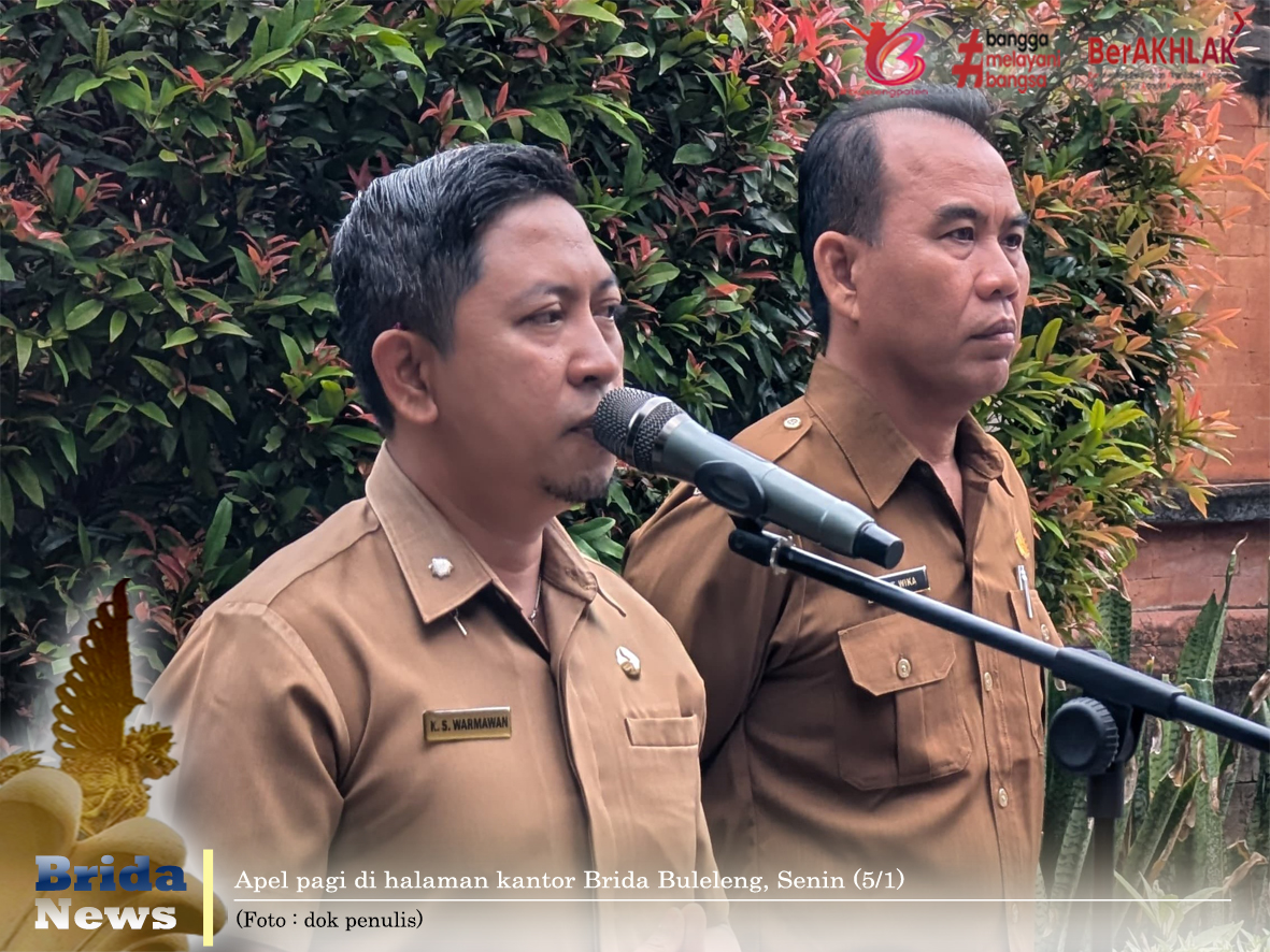 Singaraja - Mengawali tahun 2026, keluarga besar Badan Riset dan Inovasi Daerah (Brida) Kabupaten Buleleng melaksanakan apel pagi di lingkungan kantor setempat, Senin (5/1), dengan dipimpin langsung Kepala Brida, Ketut Suwarmawan, S.S.T.P., M.M.
