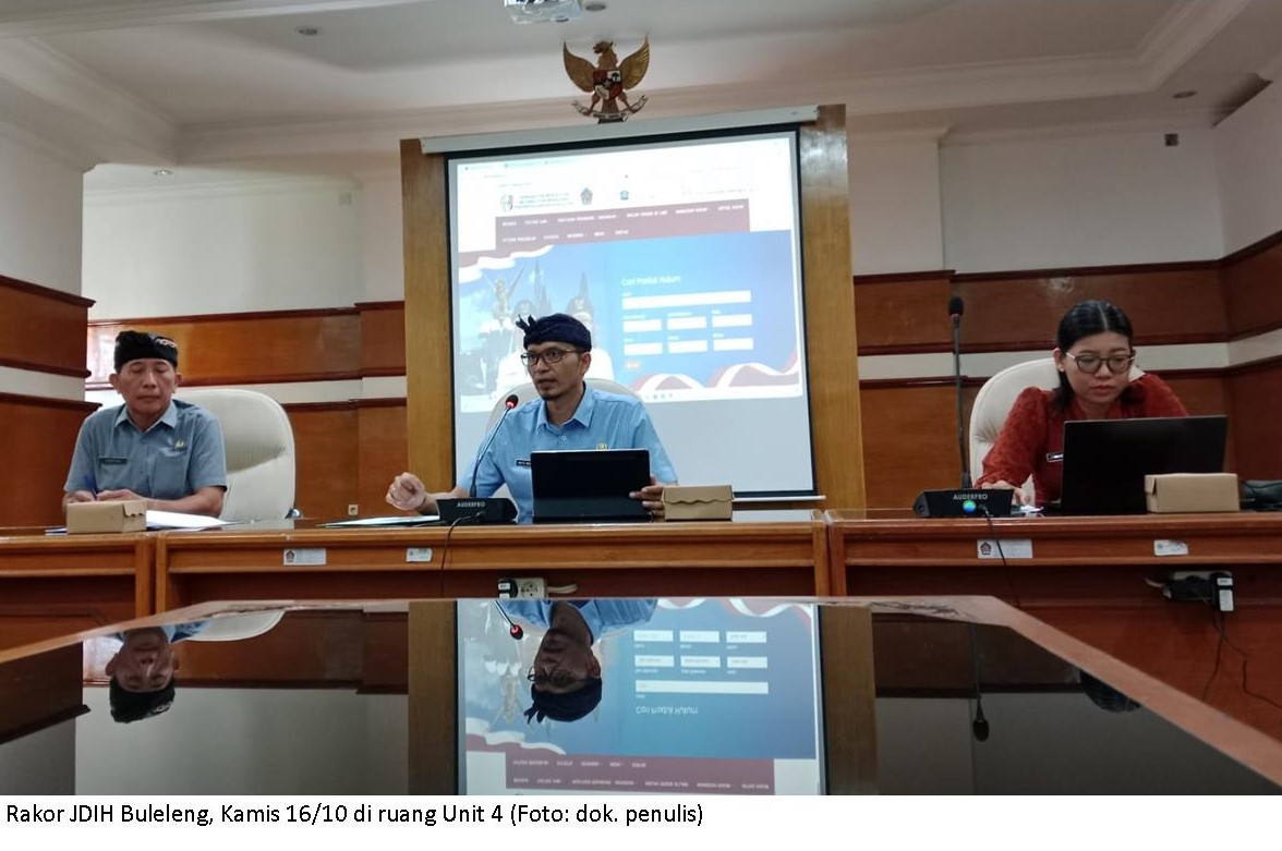 Hal itu disampaikan Kepala Bagian Hukum Setda Buleleng, Made Bayu Waringin, S.H., M.H., saat memimpin koordinasi bersama seluruh anggota JDIH, Kamis (16/10) di ruang Unit 4 kantor Setda setempat.