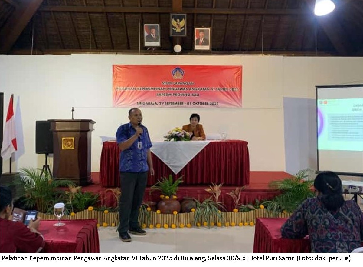 BRIDA, Badan Kepegawaian dan Pengembangan Sumber Daya Manusia (BKPSDM) Provinsi Bali melaksanakan Pelatihan Kepemimpinan Pengawas (PKP) Angkatan VI Tahun 2025, Selasa (30/9) di Hotel Puri Saron Buleleng. Kegiatan ini merupakan upaya strategis dalam meningkatkan kompetensi kepemimpinan pejabat pengawas di lingkungan pemerintah daerah.