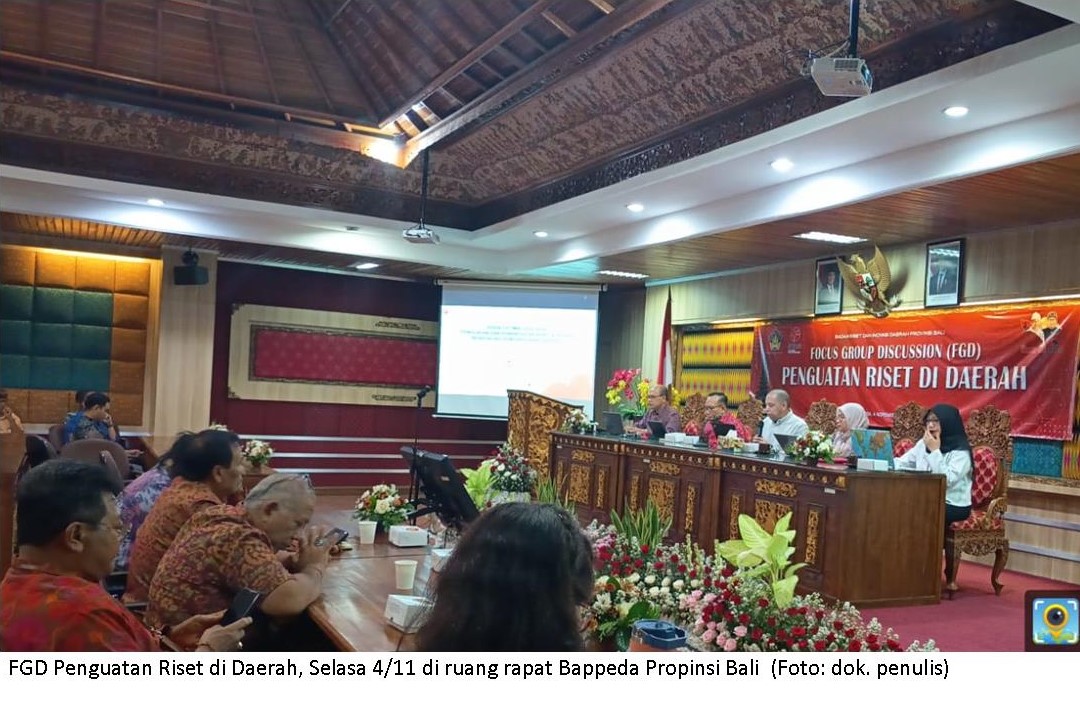 BRIDA - Badan Riset dan Inovasi Daerah (Brida) Kabupaten Buleleng mengikuti Focus Group Discussion (FGD) Penguatan Riset di Daerah, Selasa (4/11) di ruang rapat Bappeda Propinsi Bali. FGD ini diharapkan dapat merajut kolaborasi multisektor untuk penguatan riset di daerah demi kemajuan pembangunan Bali.