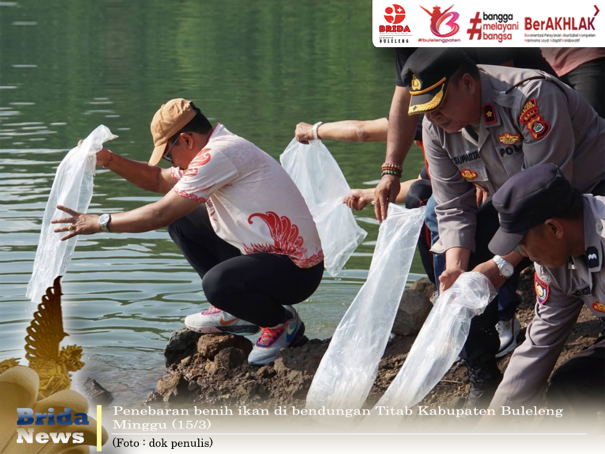 Buleleng - Suasana Bendungan Titab–Ularan tampak lebih semarak pada Minggu (15/3). Pemkab Buleleng menggelar kegiatan Penebaran Benih Ikan dan Gerakan Memasyarakatkan Makan Ikan (Gemarikan) sebagai bagian dari rangkaian peringatan HUT ke-422 Kota Singaraja. Kegiatan ini sekaligus menjadi langkah nyata untuk memperkuat sektor perikanan dan meningkatkan kesadaran masyarakat akan pentingnya konsumsi ikan.