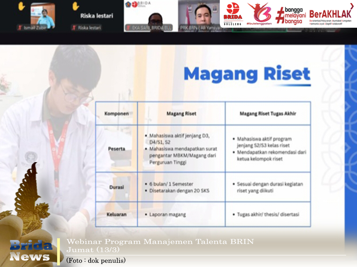 Buleleng - Badan Riset dan Inovasi Nasional (BRIN) hari ini, Jumat (13/3) melaksanakan Sosialisasi Program Manajemen Talenta BRIN, melalui Pusat Riset Kependudukan BRIN dan pesertanya terbuka untuk umum.