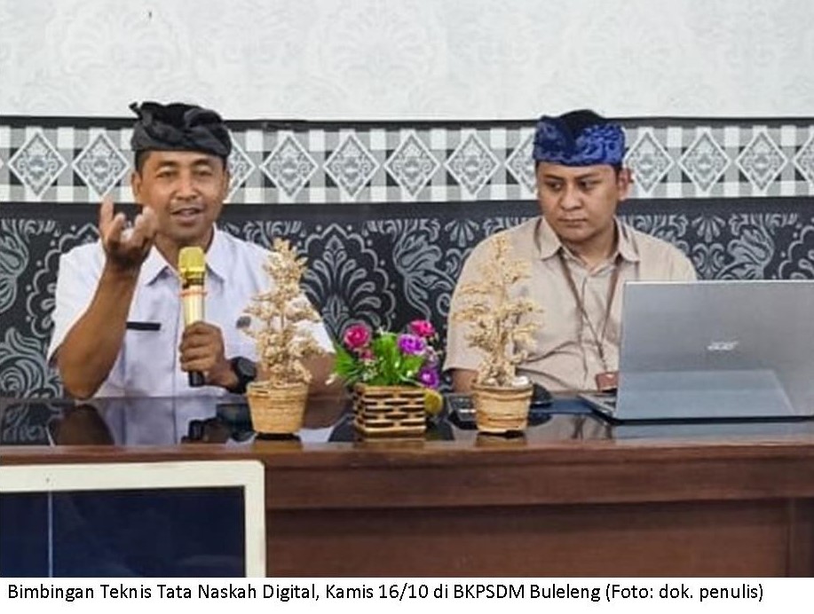 BRIDA, BKPSDM Kabupaten Buleleng melaksanakan Bimbingan Teknis Tata Naskah Digital kepada para operator kepegawaian lingkup Pemkab Buleleng, Kamis (16/10) di ruang rapat setempat.
